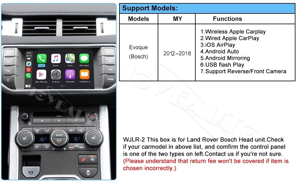 1. Ronge Rover Evoque OEM Integration drahtlos Apple CarPlay;