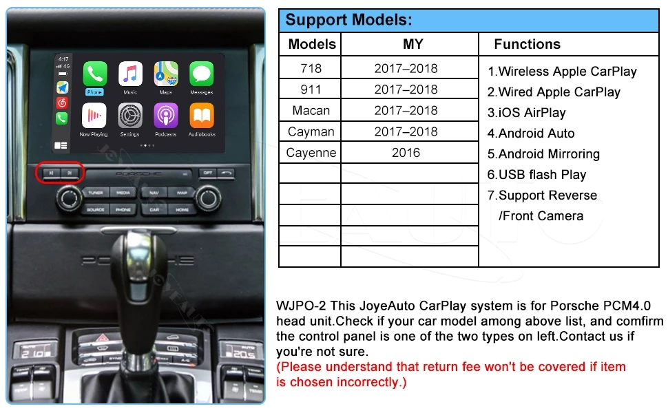 - Arbeitet mit drahtlosen Apple CarPlay, Paarung über Bluetooth, Übertragung über WIFI;